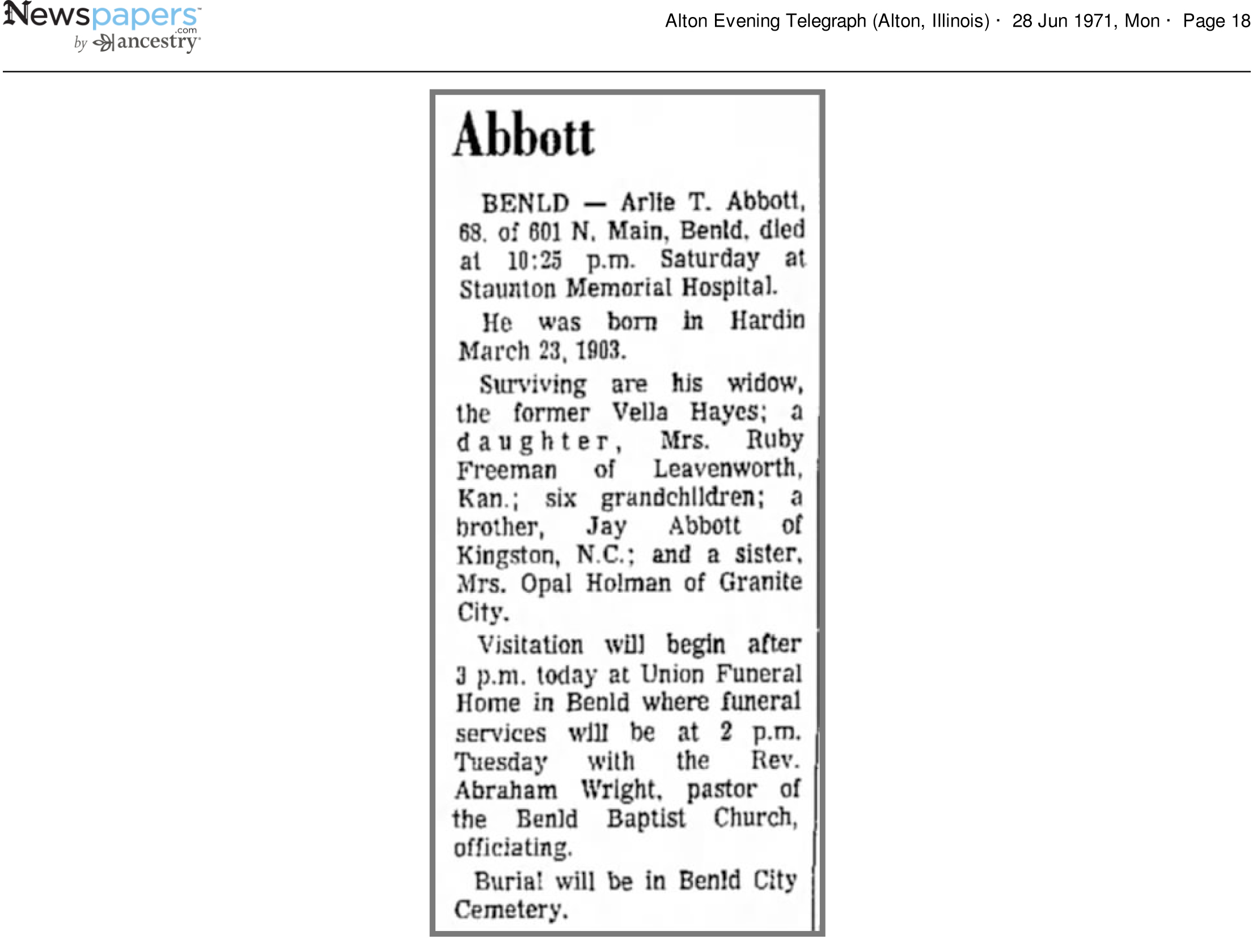 Born: 22 Apr 1913 - Venice, Madison County, Illinois